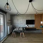 Este apartamento dispone de servicio de tetera/cafetera y una cocina completa con horno de microondas, hervidor eléctrico y nevera. El aeropuerto Szczecin-Goleniów "Solidarność", el más cercano, se encuentra a 95 km del apartamento, mientras que la estación de autobuses Wylotowa przy Plazowej está a alrededor de 100 metros. El establecimiento cuenta con acceso a terraza solárium, terraza y patio, así como una terraza con vistas al jardín. En este alojamiento ofrece alquiler de bicicletas, y la zona es popular para practicar senderismo y ciclismo.